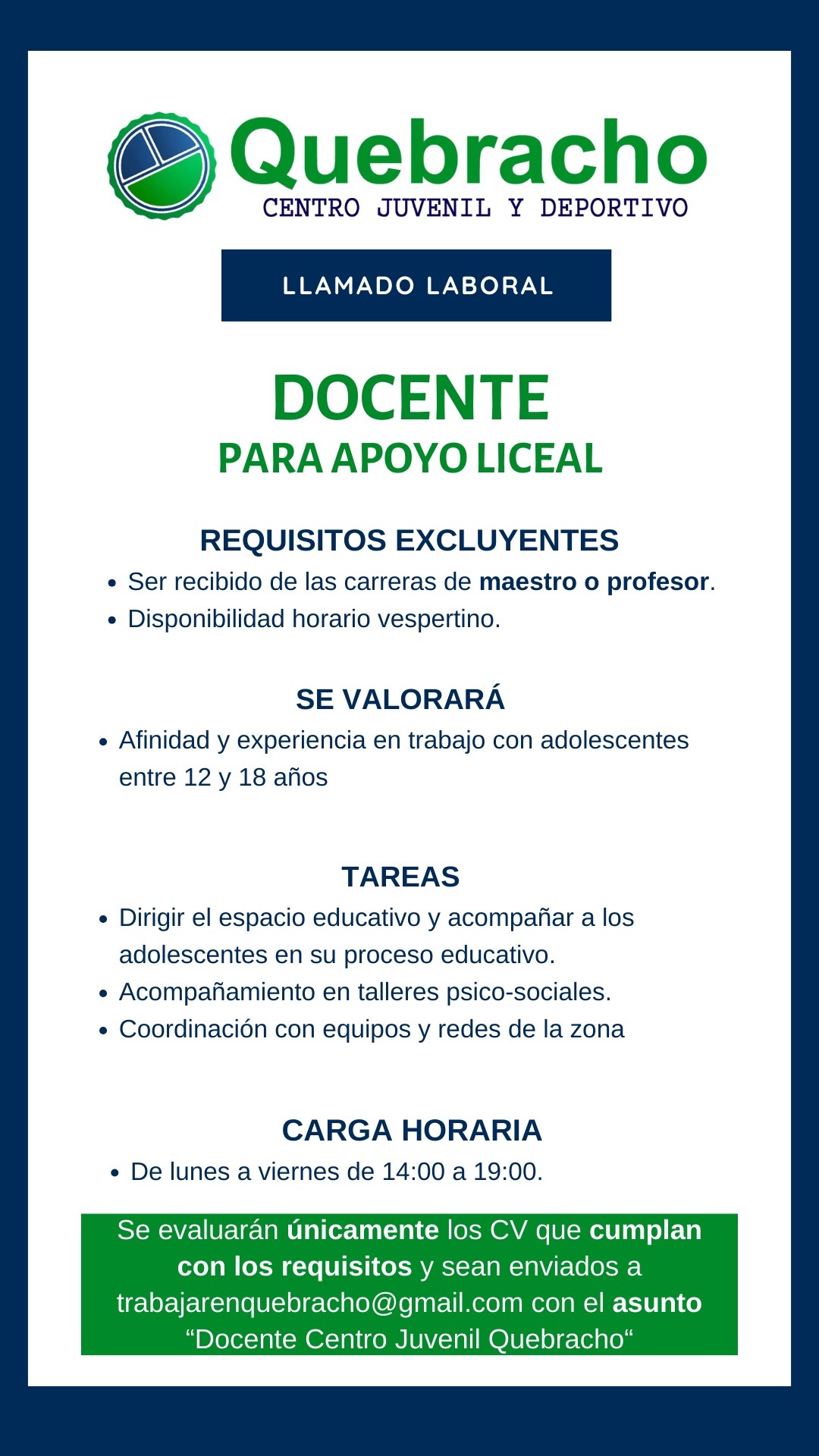 Llamado Docente de apoyo liceal
