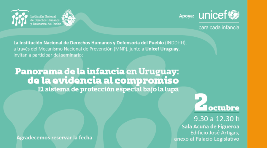 La Institución Nacional de Derechos Humanos y Defensoría del Pueblo (INDDHH), a través del Sistema de Protección del Mecanismo Nacional de Prevención (MNP), junto a UNICEF Uruguay, realizaron este jueves 2 de octubre el seminario “Panorama de la infancia en Uruguay: de la evidencia al compromiso. El sistema de protección especial bajo la lupa”.